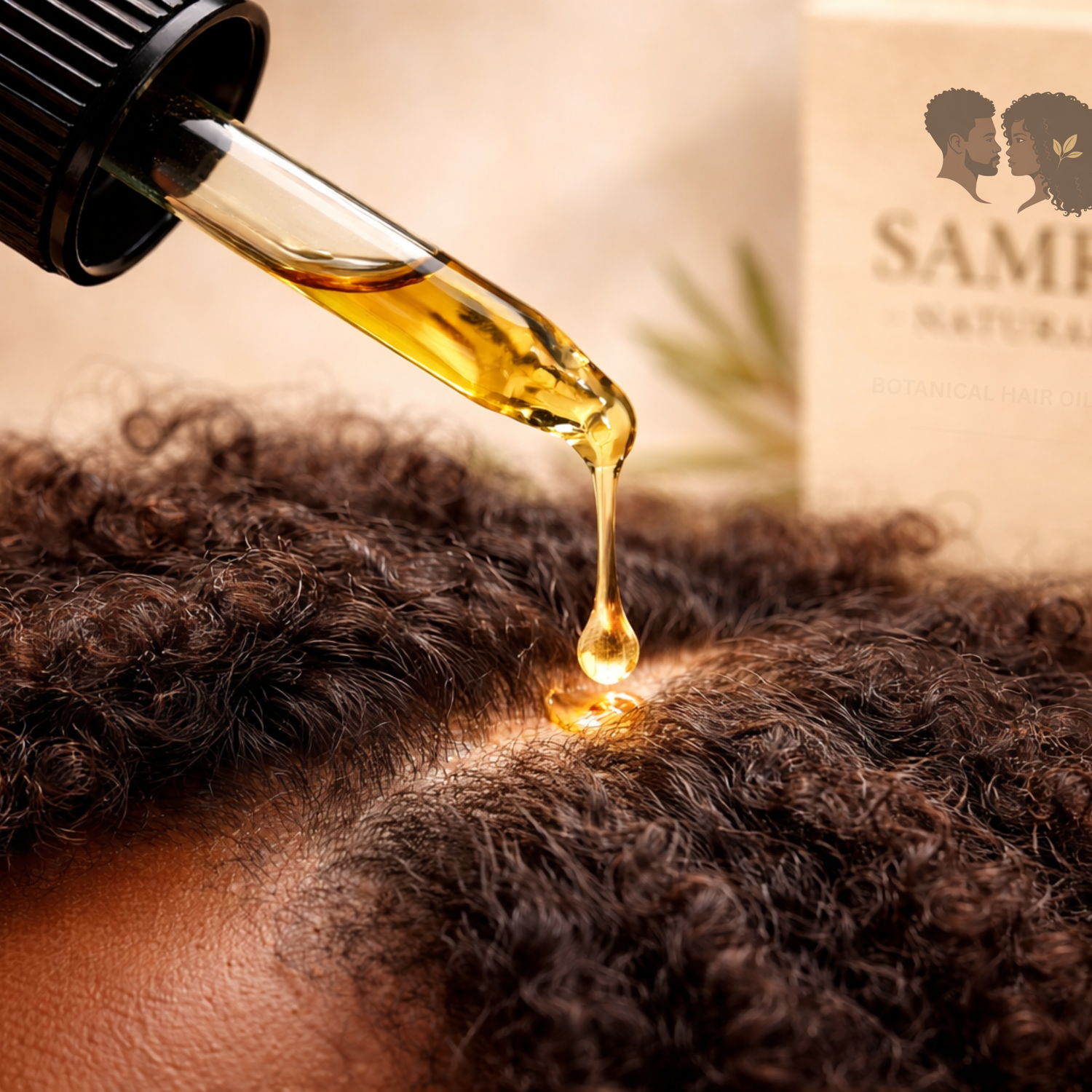 The Samra Naturals logo came to me while I was thinking about the garden, about Adam and Eve, and what it means to return. Not backwards, but inward… back to the root, back to what is pure and untouched. Before the noise, before the fall, we were love. And I believe our healing still begins there. Just like the hair, everything starts at the root. When we nurture it with intention, we’re not just caring for our hair; we’re remembering who we are.